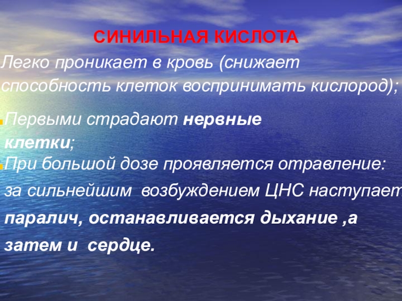Легко проникает в кровь (снижает способность клеток воспринимать кислород);
