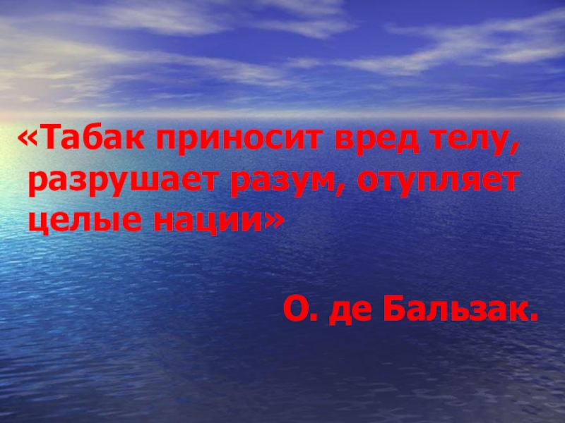 Слайд 2 «Табак приносит вред телу, разрушает разум, отупляет целые нации»