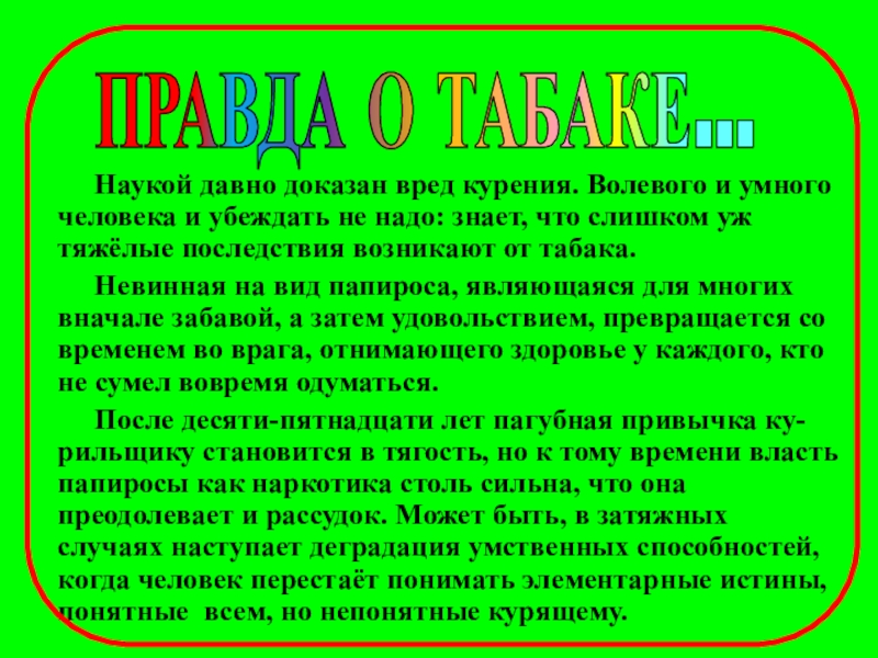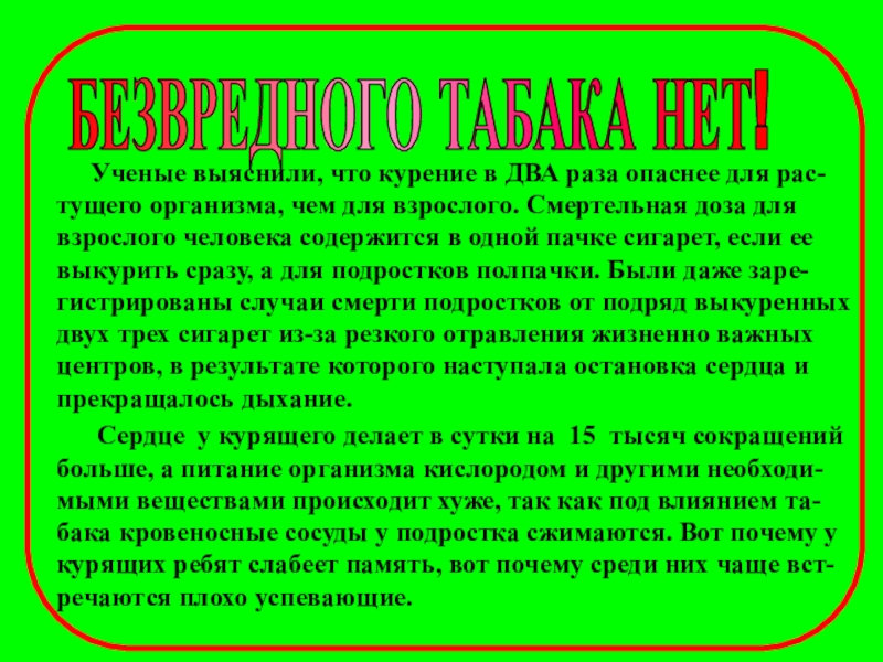 БЕЗВРЕДНОГО ТАБАКА НЕТ!