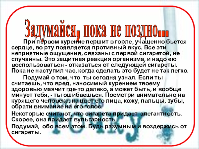 ГУБИТЕЛЬНАЯ СИГАРЕТА…
