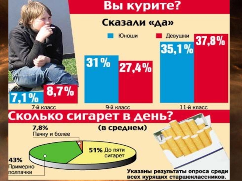 Свою первую сигарету мальчики выкуривают в возрасте до 10 лет, девочки - в 13-14.