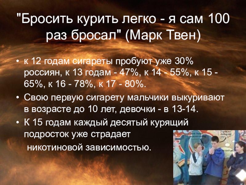 Слайд 5"Бросить курить легко - я сам 100 раз бросал" (Марк Твен)