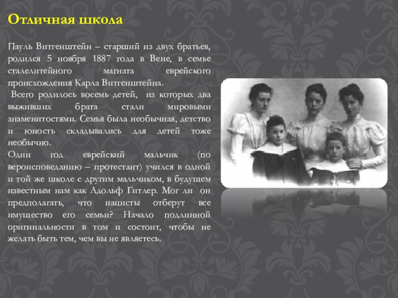 Пауль Витгенштейн – старший из двух братьев, родился 5 ноября