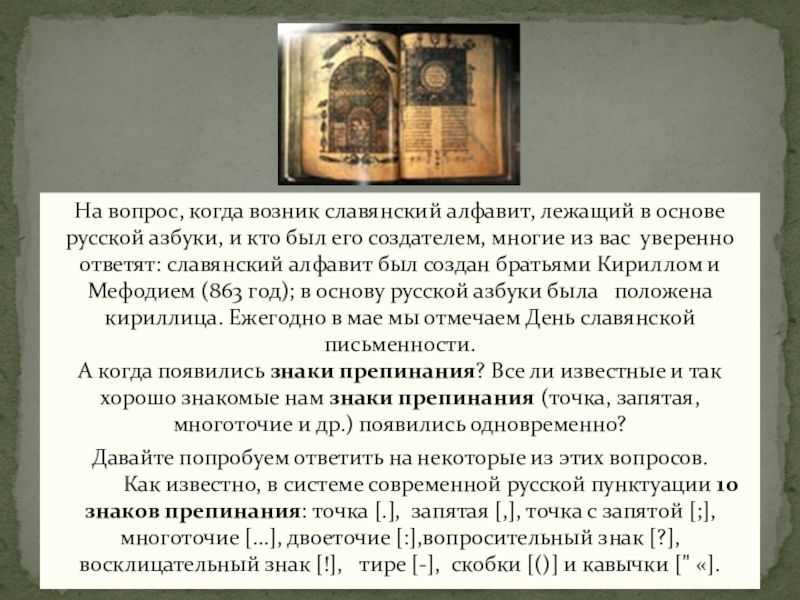 А когда появились знаки препинания? Все ли известные и так хорошо знакомые нам знаки препинания (точка, запятая, многоточие и др.) появились одновременно?