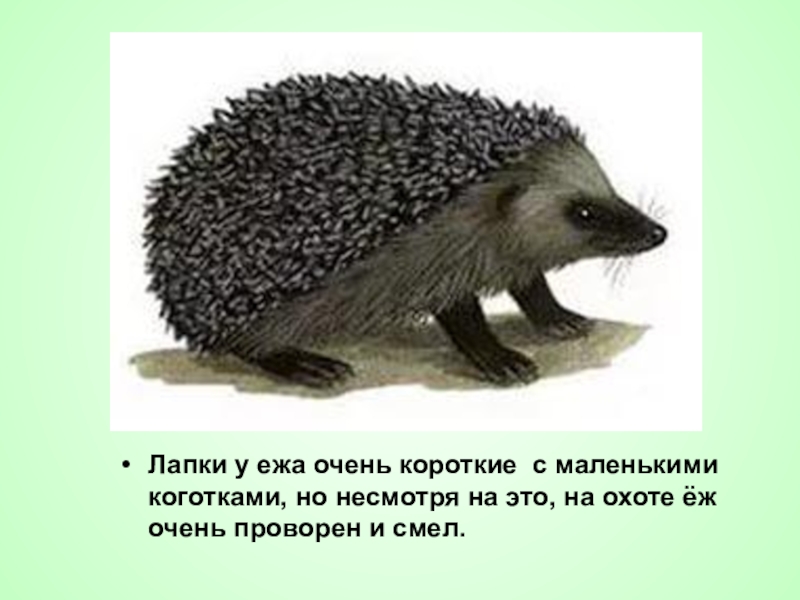Слайд 4Лапки у ежа очень короткие с маленькими коготками, но несмотря на