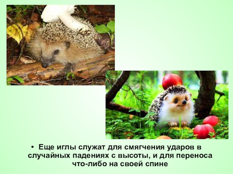 Еще иглы служат для смягчения ударов в случайных падениях с высоты,
