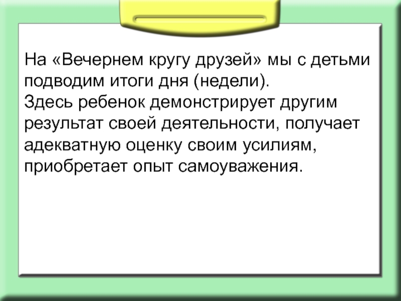 Слайд 39На «Вечернем кругу друзей» мы с детьми подводим итоги дня (недели).