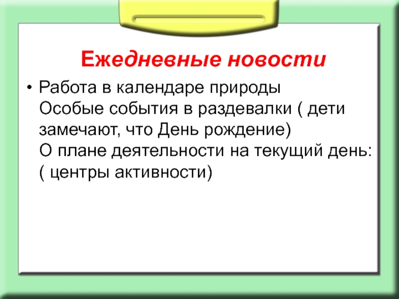 Особые события в раздевалки ( дети замечают, что День рождение) О плане деятельности на текущий день: ( центры активности)