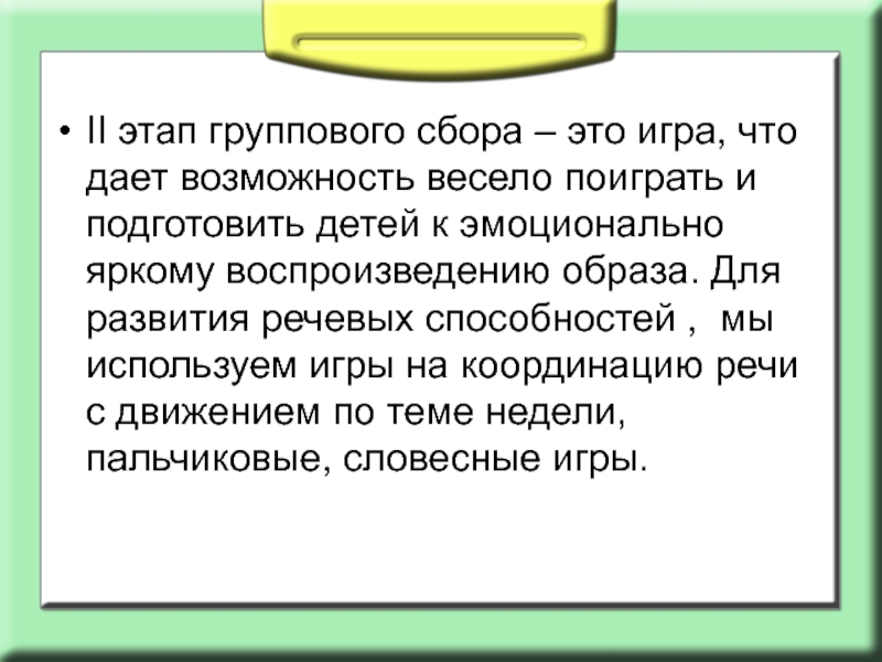 Слайд 16II этап группового сбора – это игра, что дает возможность весело