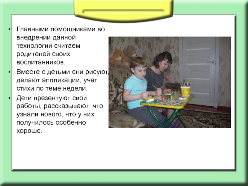 Слайд 40Главными помощниками во внедрении данной технологии считаем родителей своих воспитанников.