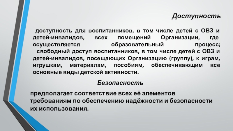 свободный доступ воспитанников, в том числе детей с ОВЗ и детей-инвалидов, посещающих Организацию (группу), к играм, игрушкам, материалам, пособиям, обеспечивающим все основные виды детской активности.