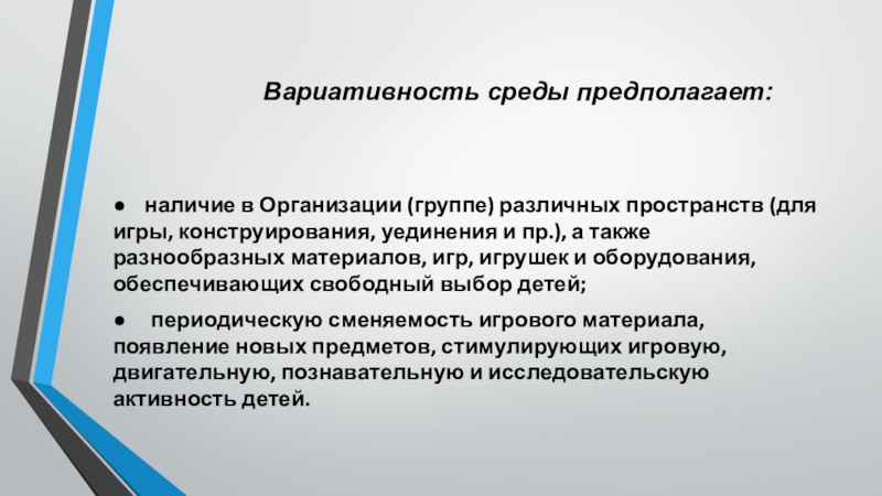 Слайд 15 Вариативность среды предполагает:
