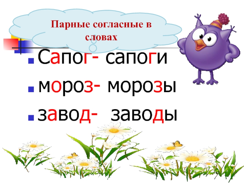 Сапог- сапогимороз- морозызавод- заводыПарные согласные в словах