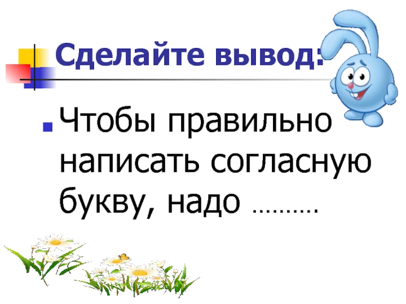 Сделайте вывод:Чтобы правильно написать согласную букву, надо ……….