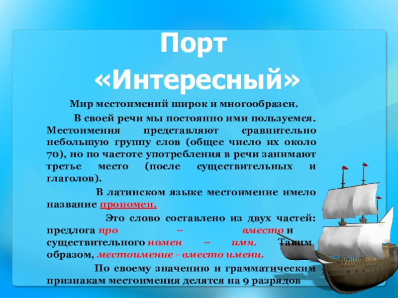 Порт    «Интересный»        Мир местоимений