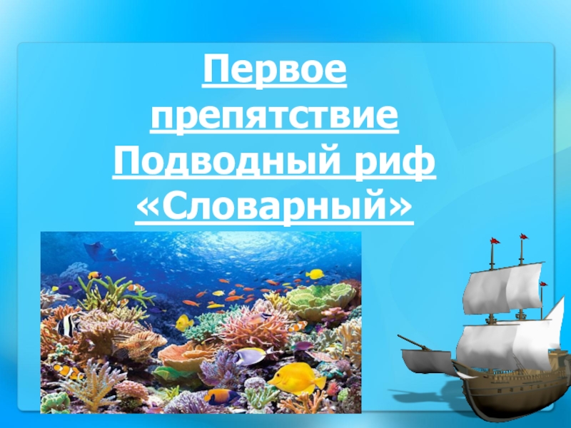 Слайд 2Первое препятствие Подводный риф «Словарный»