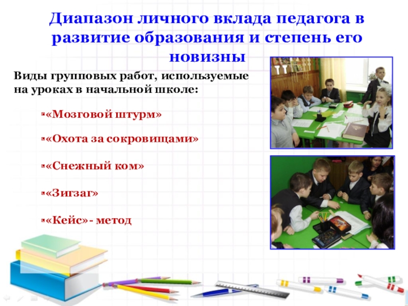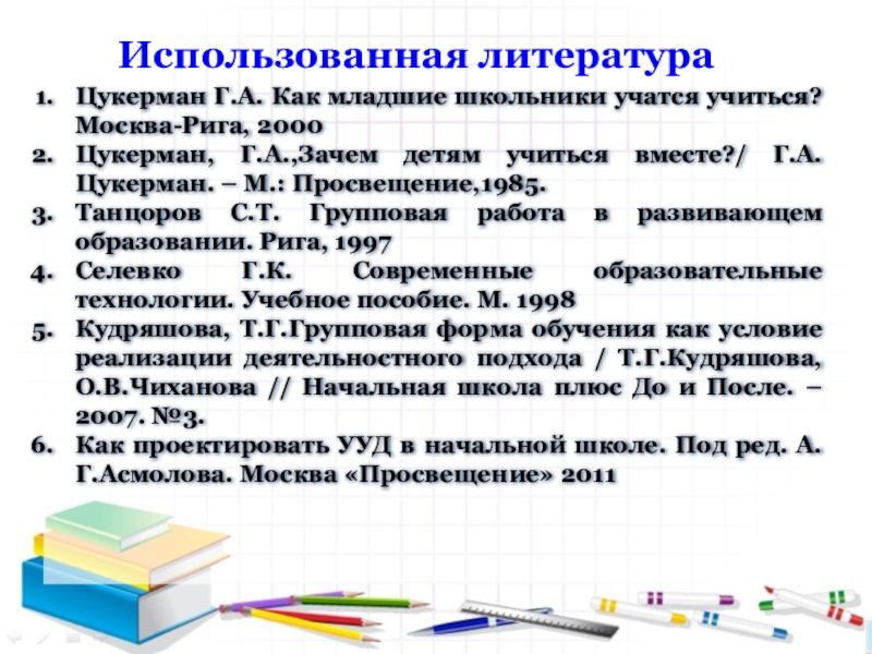 изучение научно-педагогической литературы, передового опыта коллег по организации групповых форм работы на уроках