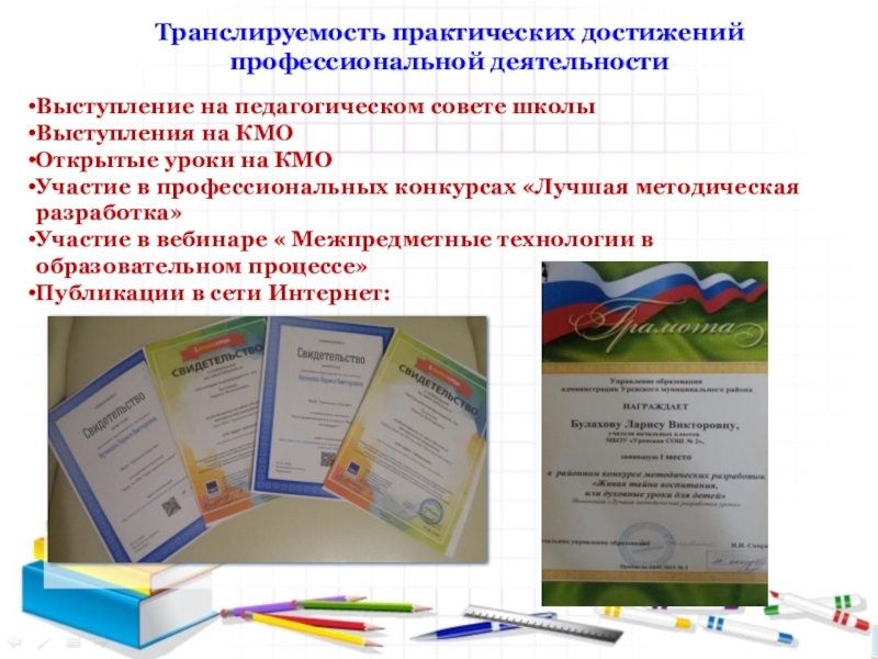 участие в вебинаре по теме «Межпредметные технологии в образовательном процессе»,