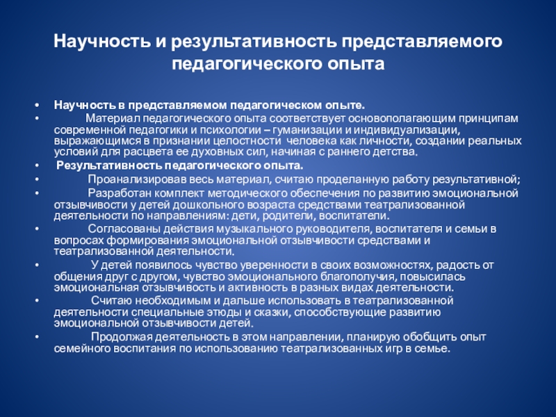 Слайд 35Научность и результативность представляемого педагогического опыта