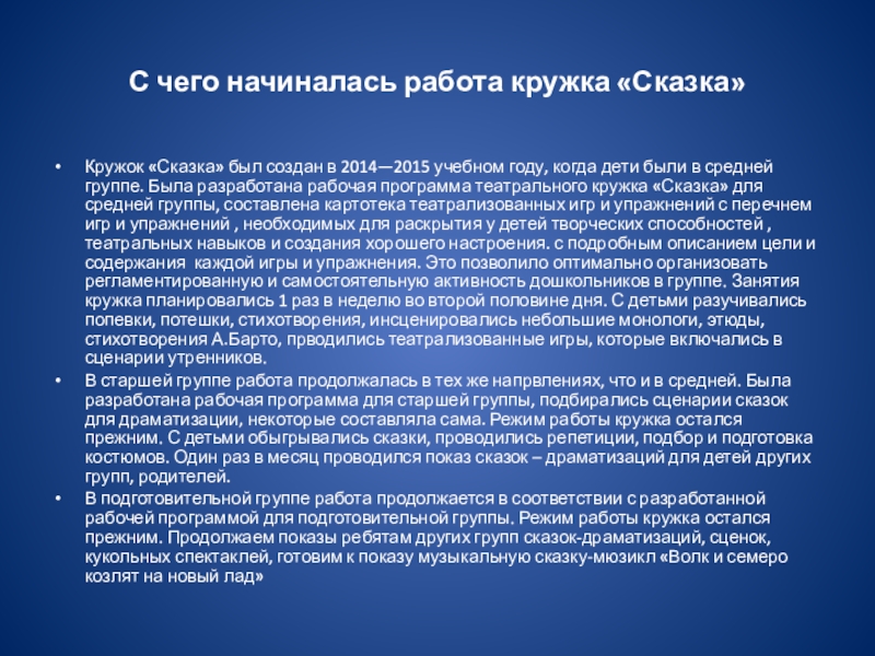 Кружок «Сказка» был создан в 2014—2015