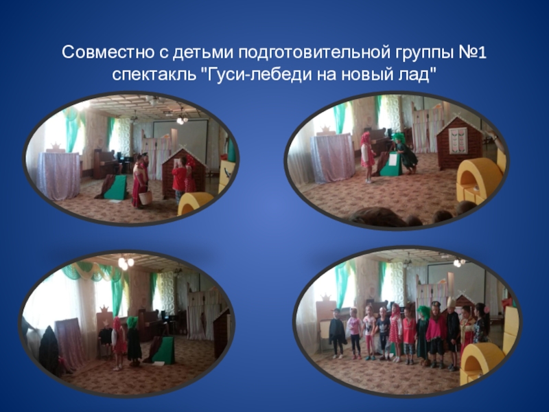 Слайд 28Совместно с детьми подготовительной группы №1 спектакль "Гуси-лебеди на новый лад"