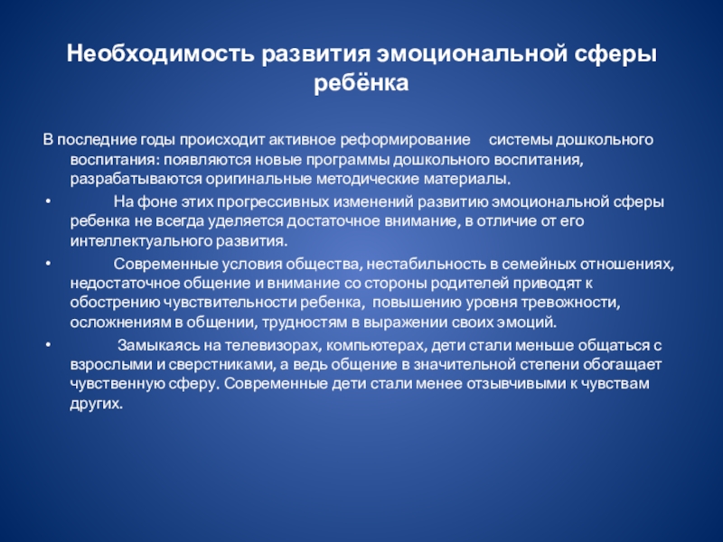 Слайд 4Необходимость развития эмоциональной сферы ребёнка