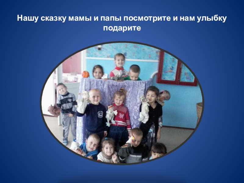 Слайд 33Нашу сказку мамы и папы посмотрите и нам улыбку подарите