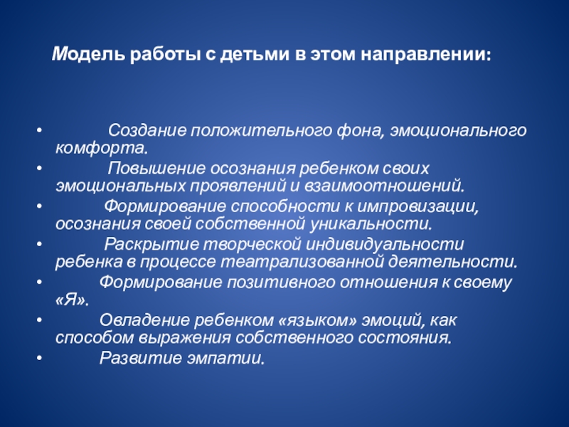 Модель работы с детьми в этом направлении: