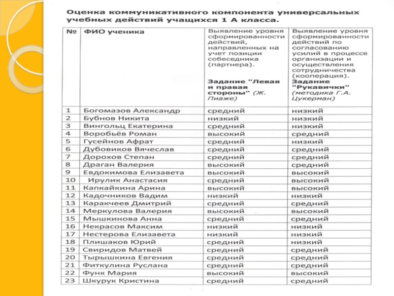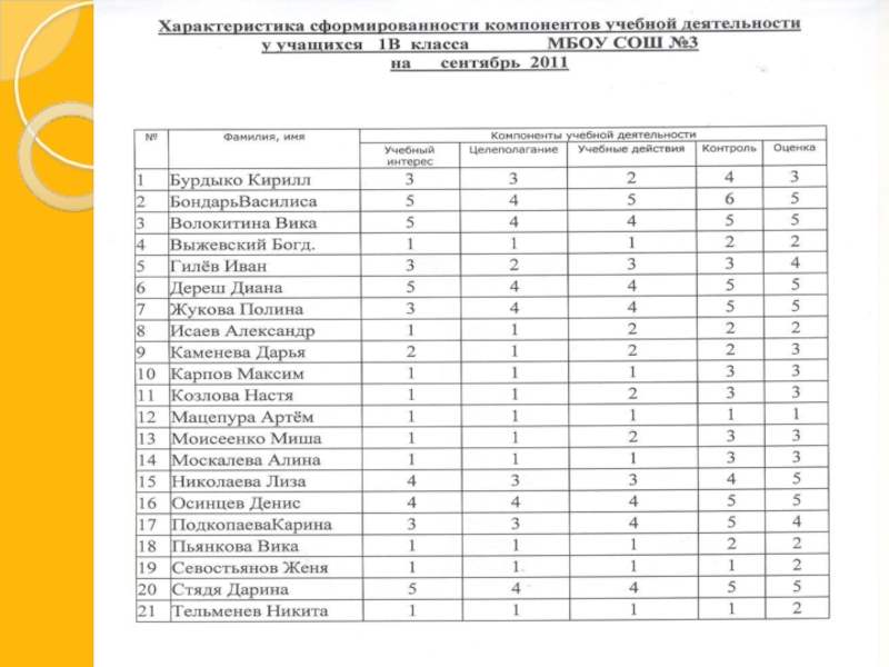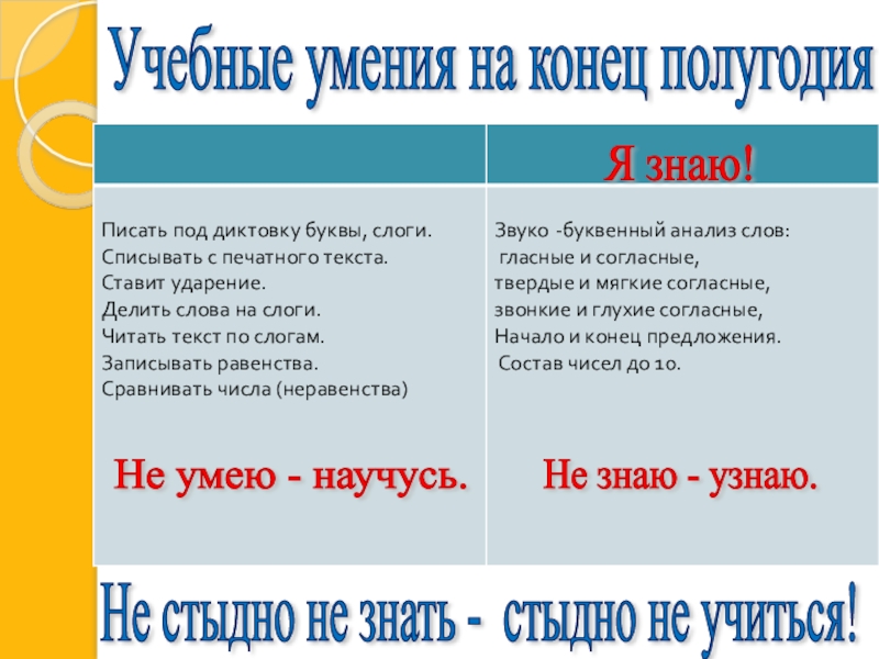 Учебные умения на конец полугодия