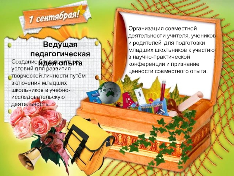Организация совместной деятельности учителя, учеников и родителей для подготовки младших школьников к участию в научно-практической конференции и признание ценности совместного опыта.