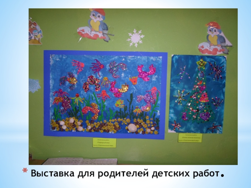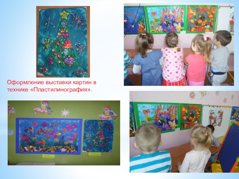 Слайд 20Оформление выставки картин в технике «Пластилинография».