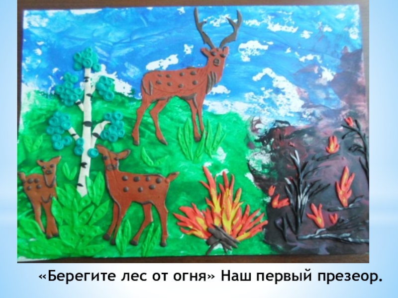 Слайд 9«Берегите лес от огня» Наш первый презеор.