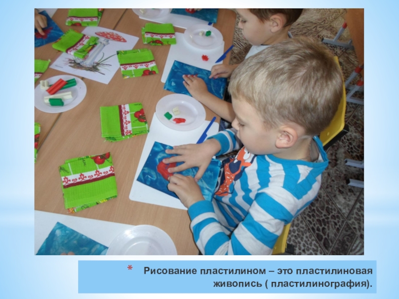 Слайд 15 Рисование пластилином – это пластилиновая живопись ( пластилинография).