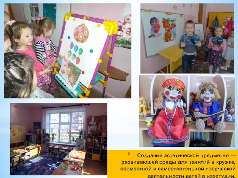 Слайд 18 Создания эстетической предметно — развивающей среды для занятий в кружке,