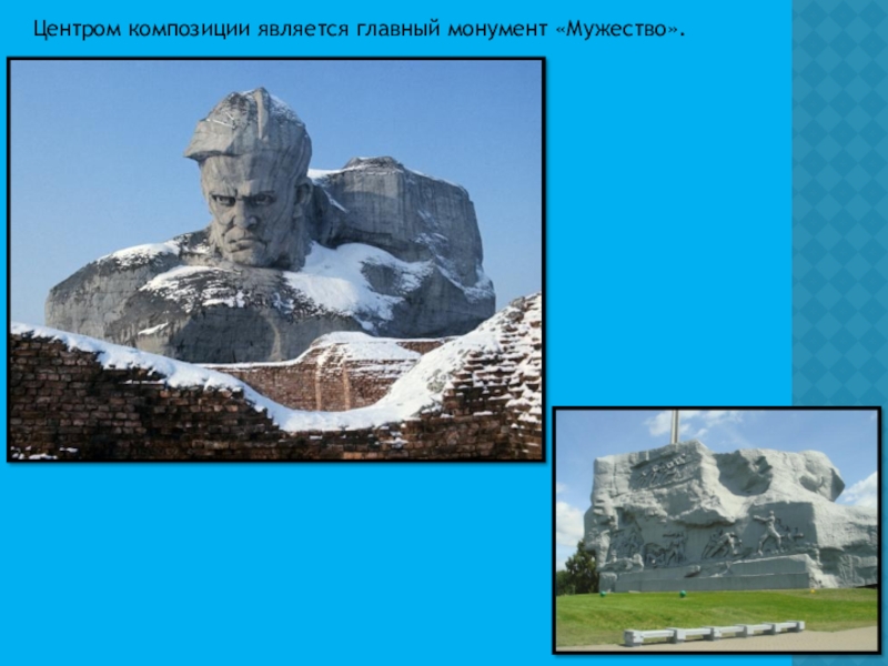Слайд 6Центром композиции является главный монумент «Мужество».
