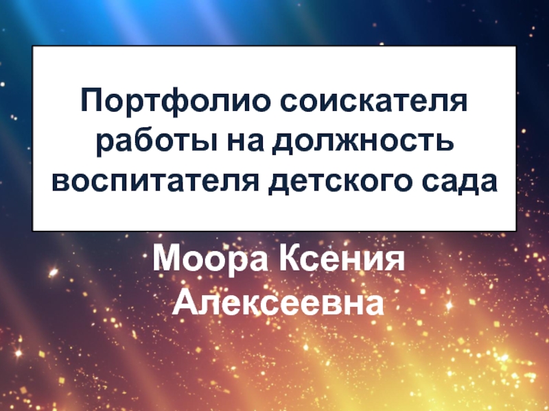 Портфолио соискателя работы на должность воспитателя детского садаМоора Ксения Алексеевна