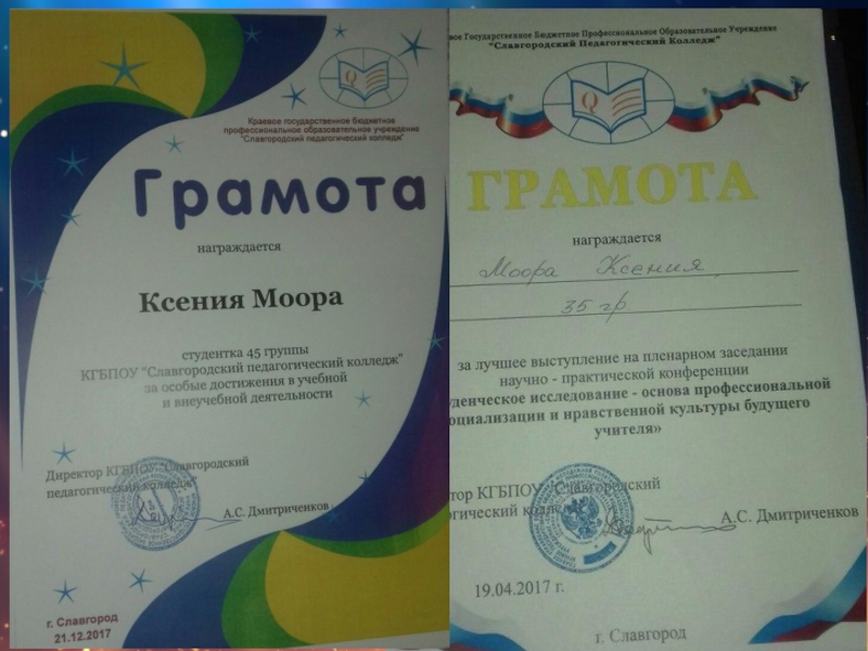 Грамоты за особые достижения в учебной и вне учебной деятельности в 2016-2017 гг.