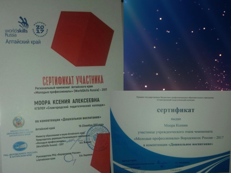Сертификат участника регионального чемпионата алтайского края «Молодые профессионалы» (WolrdSkills Russia» – 2017 г.