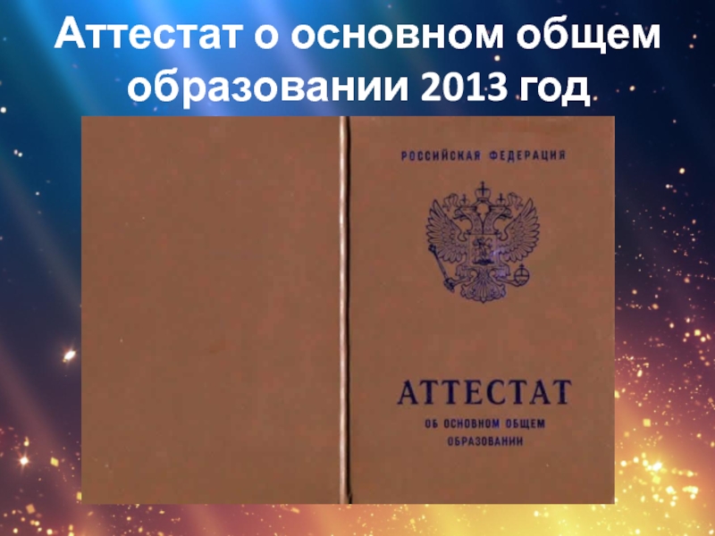 Слайд 9Аттестат о основном общем образовании 2013 год