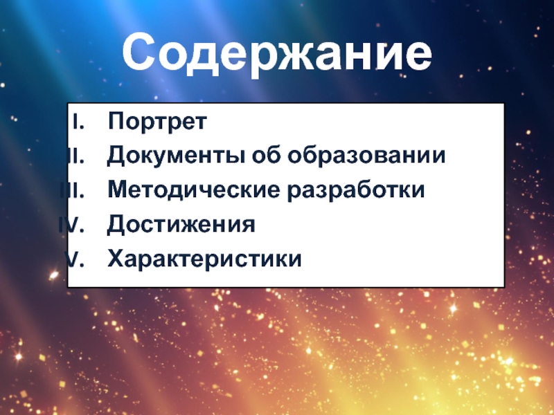 СодержаниеПортретДокументы об образованииМетодические разработкиДостиженияХарактеристики