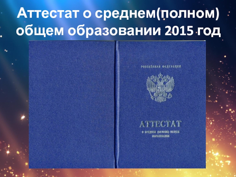 Слайд 10Аттестат о среднем(полном) общем образовании 2015 год