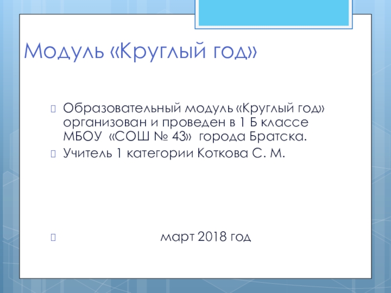 Модуль «Круглый год»Образовательный модуль «Круглый год» организован и проведен в 1 Б классе МБОУ «СОШ № 43»