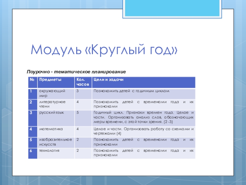 Слайд 6Модуль «Круглый год». На уроках окружающего мира