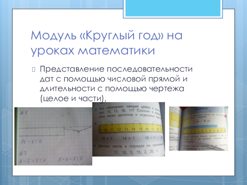 Модуль «Круглый год» на уроках математикиПредставление последовательности дат с помощью числовой прямой и длительности с помощью чертежа