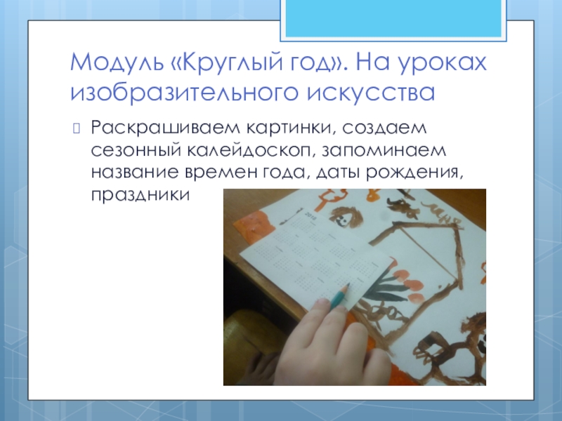 Слайд 13Модуль «Круглый год» на уроках изобразительного искусства