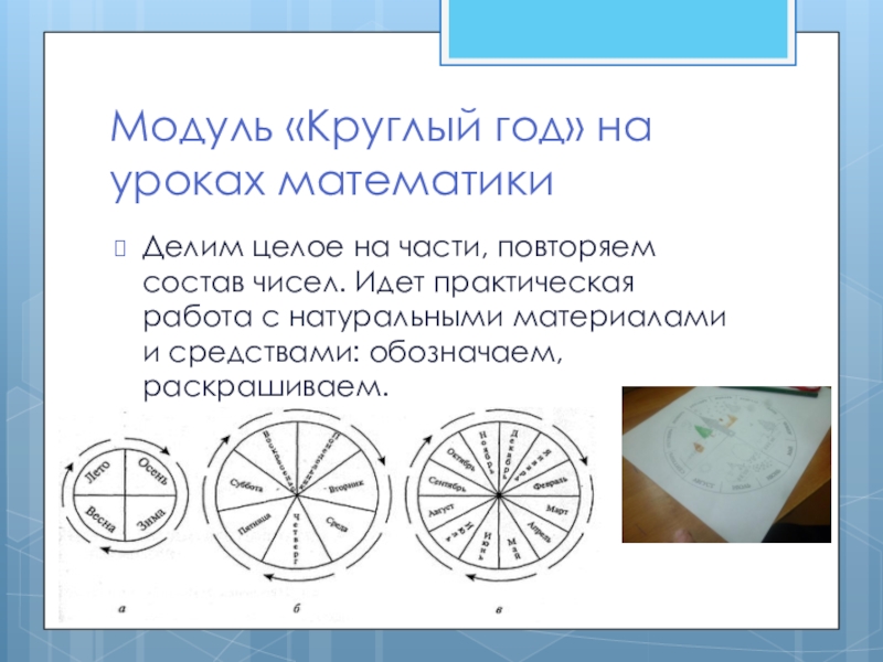 Модуль «Круглый год» на уроках математикиДелим целое на части, повторяем состав чисел. Идет практическая работа с натуральными