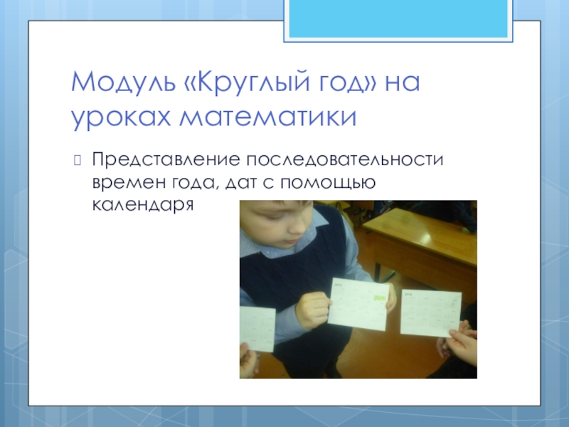 Модуль «Круглый год» на уроках математикиПредставление последовательности времен года, дат с помощью календаря