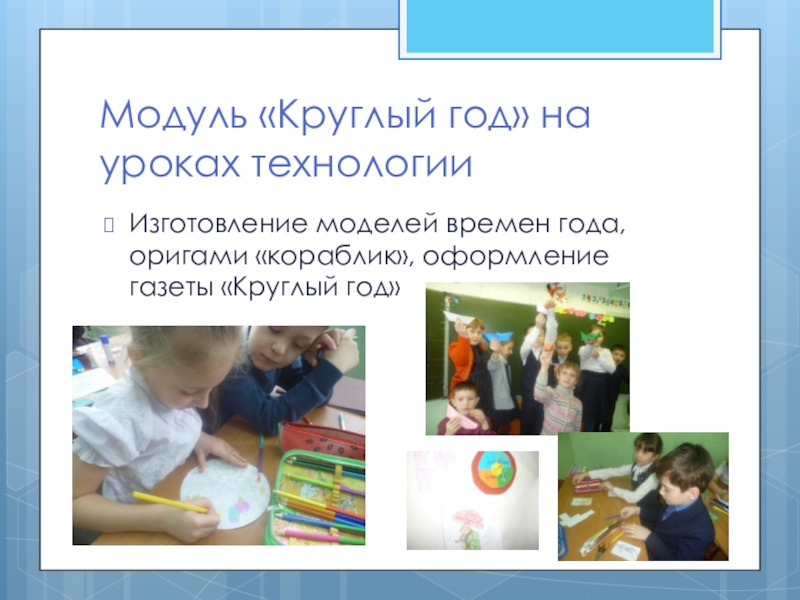 Модуль «Круглый год» на уроках технологииИзготовление моделей времен года, оригами «кораблик», оформление газеты «Круглый год»