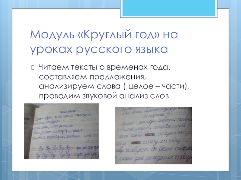 Слайд 8Модуль «Круглый год» на уроках русского языка