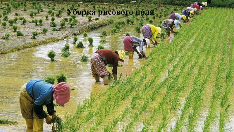 Слайд 6Уборка рисового поля